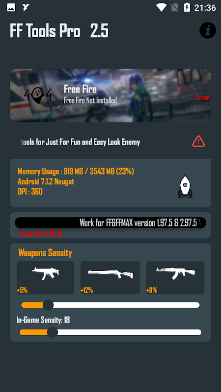 Alat FF adalah alat gratis Pro terbaik untuk Pemain gratis Api di PC dan seluler. Dengan aplikasi ini, Anda dapat mengoptimalkan gameplay Anda, dan menggunakan emote dan skin untuk menonjol di medan perang. Dengan versi terbaru 2.5, Anda juga dapat menggunakan fitur tembok dan fitur lokasi untuk mendapatkan keunggulan atas lawan Anda. Aplikasi ini juga menyertakan fitur, sehingga Anda dapat bermain dengan percaya diri. Apakah Anda seorang pemain pro di India atau gamer global, Alat FF memiliki sesuatu untuk semua orang. Apakah Anda sedang mencari tip, tekstur, atau versi lama aplikasi, Anda akan menemukan semuanya di kotak Alat FF. Dengan versi beta 3, Anda juga dapat mengakses pembaruan dan fitur terbaru, termasuk pembaruan OB38 dan skin baru. KG Gamer juga akan senang mengetahui bahwa mereka dapat menggunakan aplikasi tersebut untuk mengunduh versi lama dari game tersebut. Dengan Alat FF, Anda akan memiliki panduan pamungkas untuk Free game Fire, dengan semua alat yang Anda butuhkan untuk membawa gameplay Anda ke level selanjutnya. FF Tools tidak menyediakan glitch atau hack apapun FF Tools Pro hanyalah sebuah game booster.