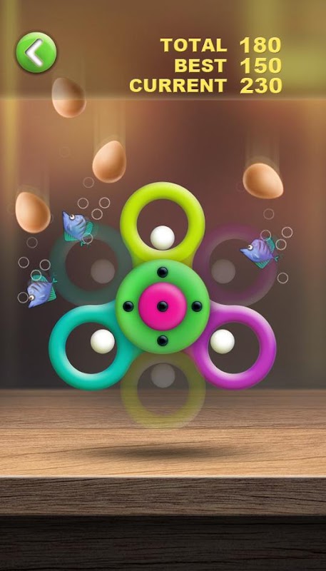 Swipe any where on screen to spin the fidget spinner. Keep spinning the fidget spinner to smash eggs and score high. Don't let the eggs come in to middle of the fidget spinner, it makes your game end.