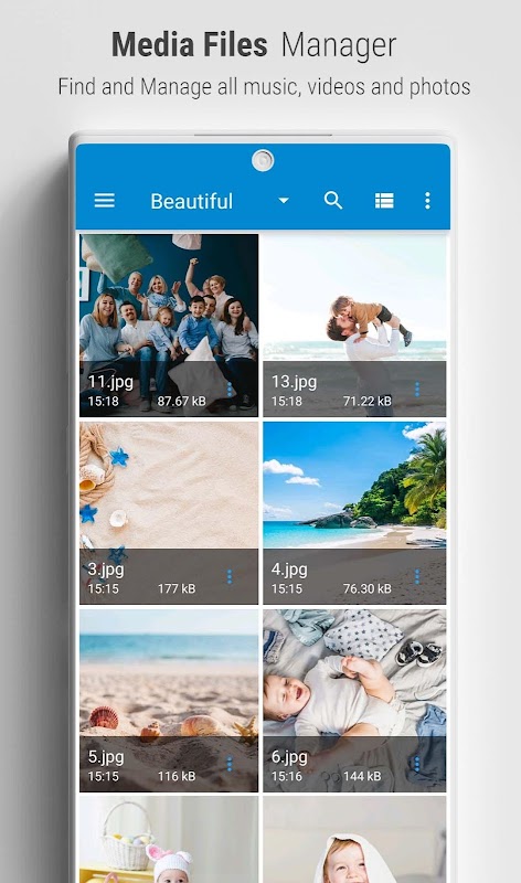 File Manager dan File Explorer membantu Anda menjelajahi file dengan kategori misal gambar, video, dokumen, arsip, aplikasi. Ini membantu Anda mengkategorikan file ke dalam kategori dan mengelola mereka dalam satu detik.