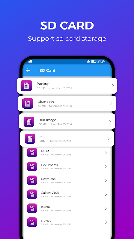 Easily see the location of each category file and the SD card usage. You can always know the storage of your phone, how much used, and how much unused.
