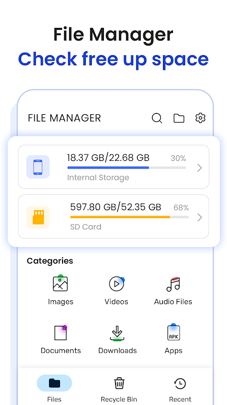 Aplikasi ini mendukung penelusuran file di penyimpanan internal dan memori eksternal, menjadikannya solusi serbaguna untuk mengelola file di semua perangkat Anda. Baik Anda menyimpan file di ponsel, tablet, atau drive eksternal, aplikasi File Manager menjaga semuanya tetap teratur di satu tempat.