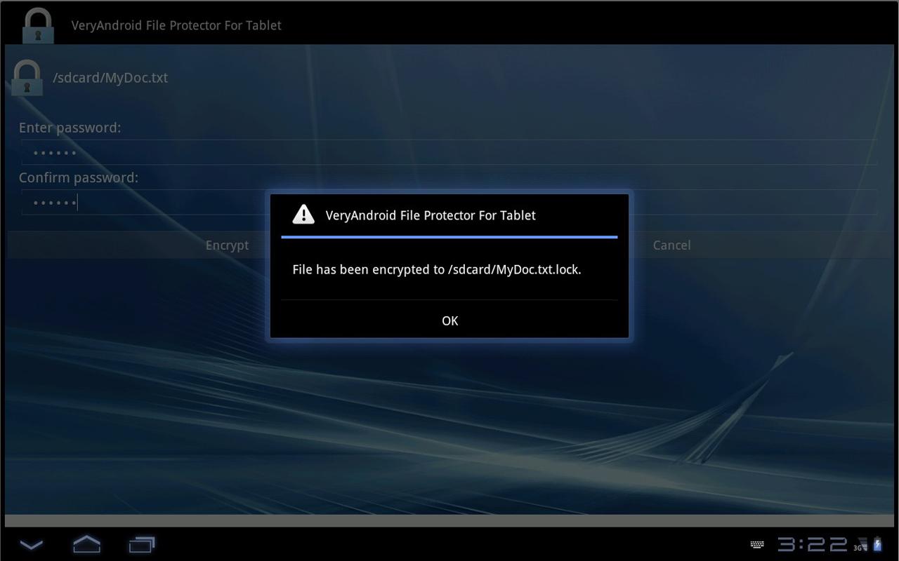 Note: This is an Android Tablet version (android 3.x), for Android 2.x device, please use VeryAndroid File Protector directly.