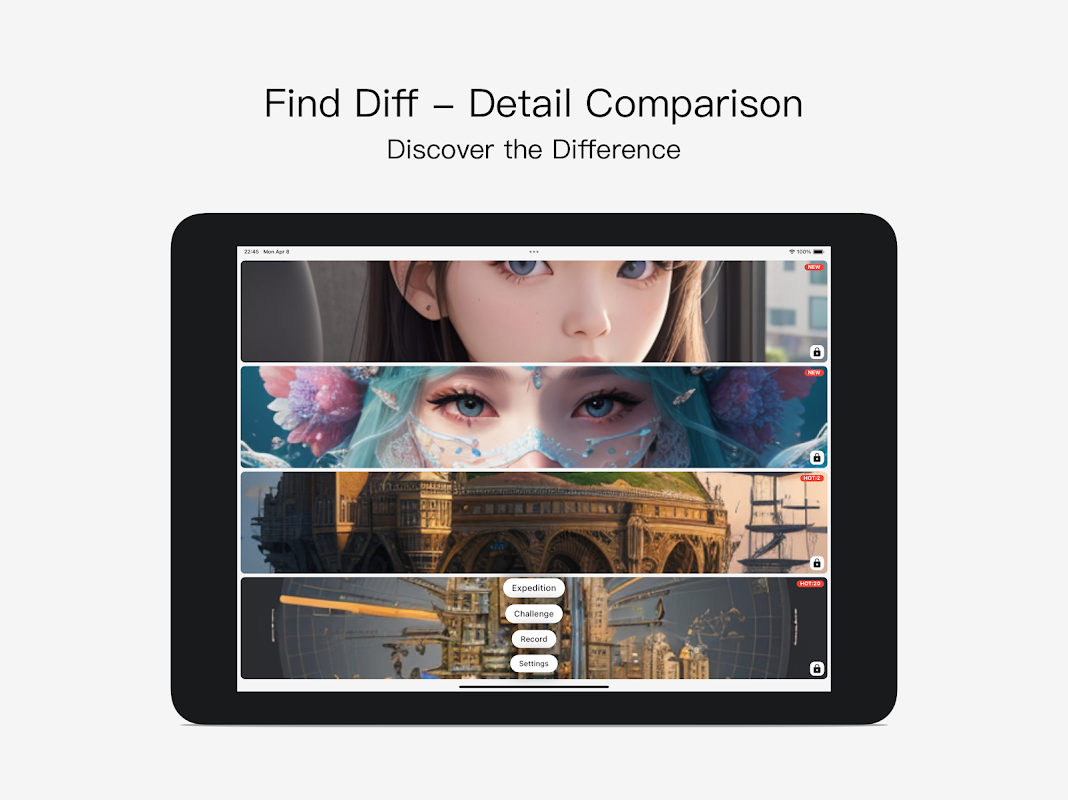 Buka level baru untuk menjelajahi berbagai tema mulai dari pemandangan alam hingga skenario futuristik, latar sejarah hingga karya seni modern. Semakin lama Anda melaju, kesulitannya semakin meningkat, sehingga pengamatan dan waktu reaksi Anda diuji.