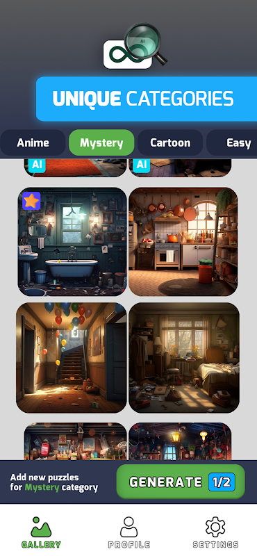 - Permainan berasaskan AI, menghasilkan teka-teki dan cabaran mencari objek tersembunyi baru setiap hari.