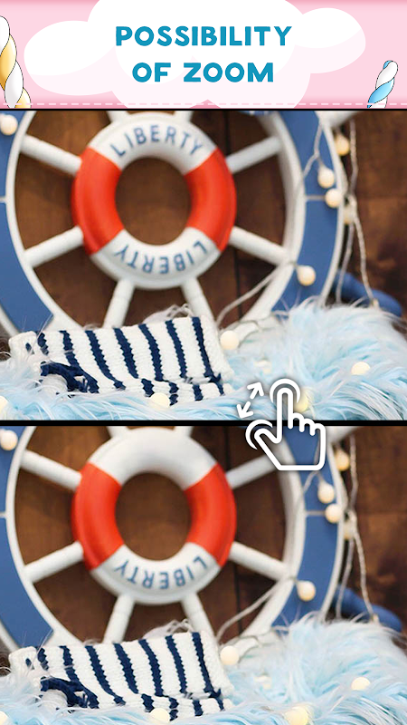 Fungsionalitas Zoom akan membantu Anda menemukan perbedaan yang tersembunyi. Tidak ada batasan waktu - cari dengan kecepatan Anda sendiri. Tujuan Anda sederhana: lihat gambar-gambarnya, temukan perbedaannya, lalu ketuk setiap gambar yang Anda temukan.