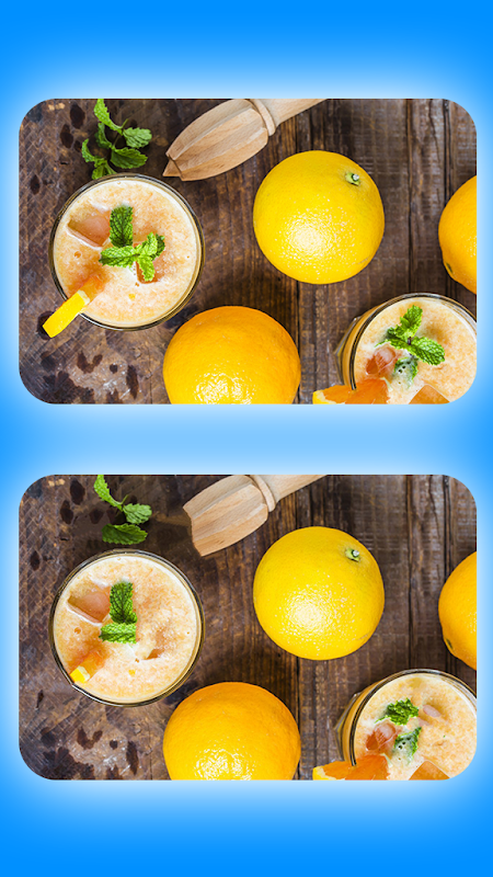 Entertainment with the find different - attention exercise games. Relaxing with the food, delicious fruit pictures in the picture quiz, find differences. Finding differences and spot it fast to win the photohunt - attention exercise game.