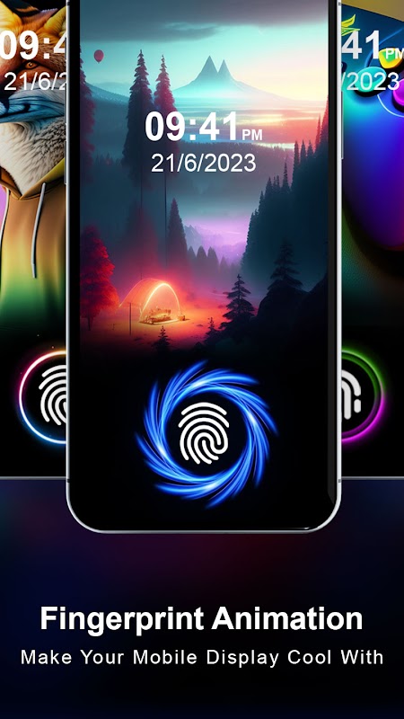 Salah satu fitur yang paling menarik dan unik dari animasi sidik jari langsung pada aplikasi layar kunci adalah kemampuan untuk berinteraksi dengan desain. Ini wallpaper anime keren yang cocok untuk ukuran layar ponsel Anda yang mengubahnya menjadi sebuah karya seni dengan animasi sidik jari ultra kami. Anda memiliki pilihan untuk memilih animasi apa pun dari gif wallpaper hidup yang paling menarik dan menerapkannya pada latar belakang yang Anda inginkan dipilih dari yang diberikan untuk menambahkan sejumput warna dan percikan ke pengalaman membuka kunci ponsel Anda dengan tampilan paling menakjubkan dari gaya animasi langsung sidik jari neon. Cara elegan untuk mempersonalisasi ponsel Anda dengan Efek Tema Animasi Sidik Jari Ultra untuk memilih dari berbagai opsi yang tersedia untuk tema sidik jari yang sempurna sesuai suasana hati dan gaya Anda.