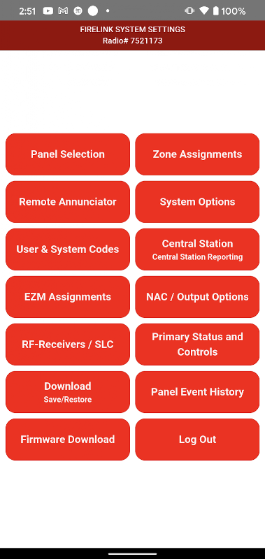 Aplikasi memungkinkan pemrograman panel alarm kebakaran komersial NAPCO FireLink.