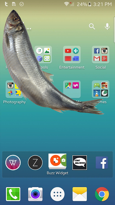 Apakah kamu suka memancing? Atau apakah Anda ingin menipu teman yang membenci ikan? Pasang 'ikan di layar' dan buat lelucon! Aplikasi ini menampilkan ikan berenang di layar Anda di atas aplikasi yang dibuka lainnya. Ini berisi animasi realistis gerakan ikan di air. Ini cara terbaik untuk membuat lelucon lucu.
