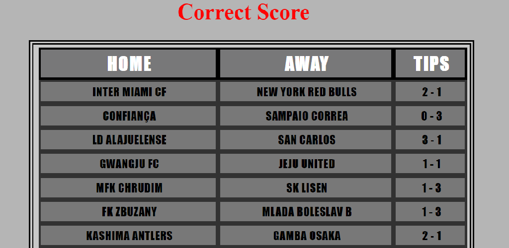 Anda dapat melihat tip skor yang benar dan tip pertandingan tetap di aplikasi kami