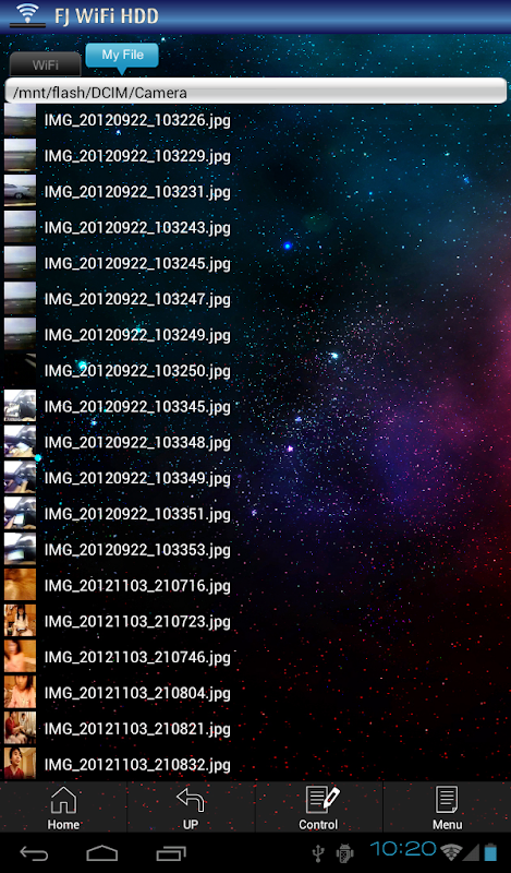 Digunakan WiFi terhubung ke perangkat remote (namanya FJ_WiFi_HDD), dan daftar isi perangkat remote, dan menampilkan konten tersebut.