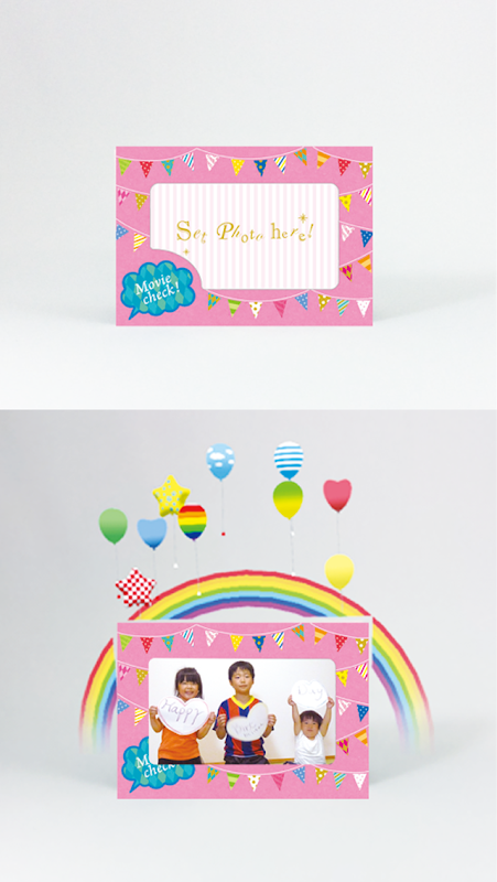 色紙やグリーティングカード等の本アプリケーション対応商品に添付のQRコードを読み込むことで特定の動画コンテンツデータをダウンロード、動画再生用マーカーにカメラをかざすことで対応商品の特定位置にAR動画を合成し表示します。