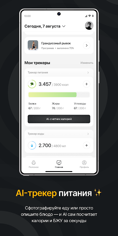 Теперь все трекеры — питание, вода, шаги, активность, голодание и вес — собраны на одном экране с возможностью кастомизации.