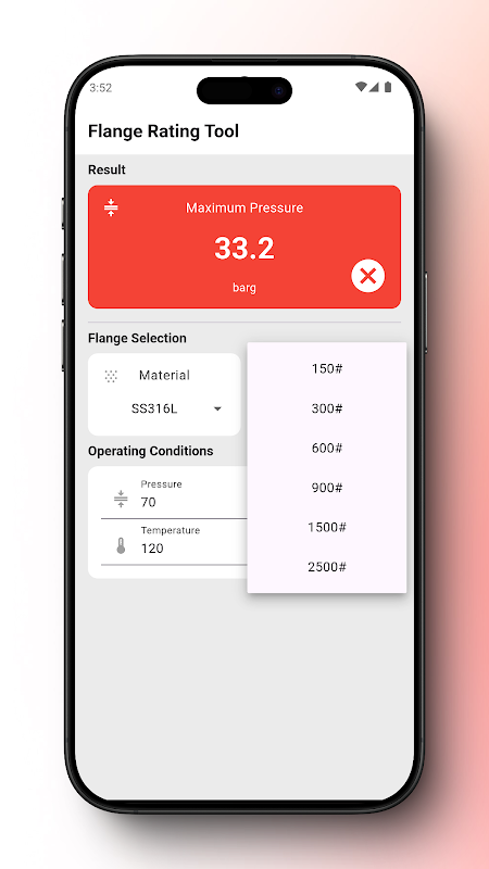 Menghitung dan menentukan peringkat flensa dengan mudah menggunakan aplikasi yang mudah digunakan ini.