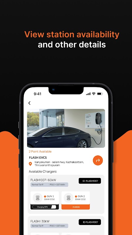 Flash Charge memiliki jaringan lebih dari 100+ stasiun pengisian daya di India, sehingga Anda selalu dapat menemukan tempat untuk mengisi daya mobil Anda. Dan dengan aplikasi kami yang mudah digunakan, Anda dapat menemukan stasiun terdekat dan membayar biaya hanya dengan beberapa ketukan.