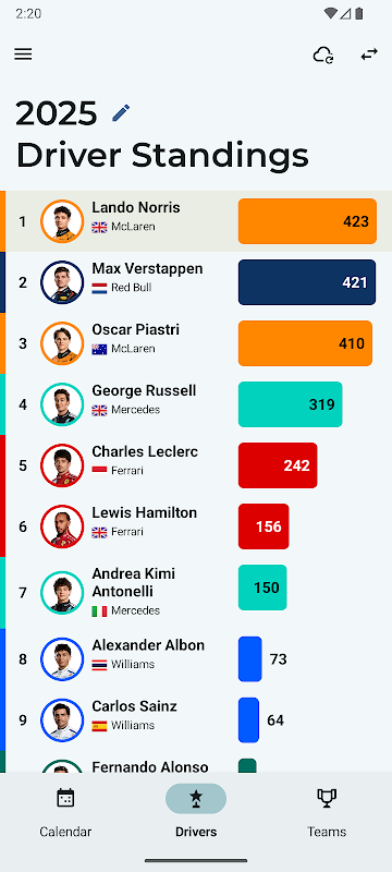 Saat musim sedang berlangsung, kalender untuk tahun ini mungkin dapat berubah karena balapan dibatalkan atau dijadwal ulang. Oleh karena itu, data mungkin gagal muncul di aplikasi setelah perlombaan selesai atau acara kalender mendatang mungkin tidak akurat. Kami akan berusaha menyelesaikan masalah ini sesegera mungkin!