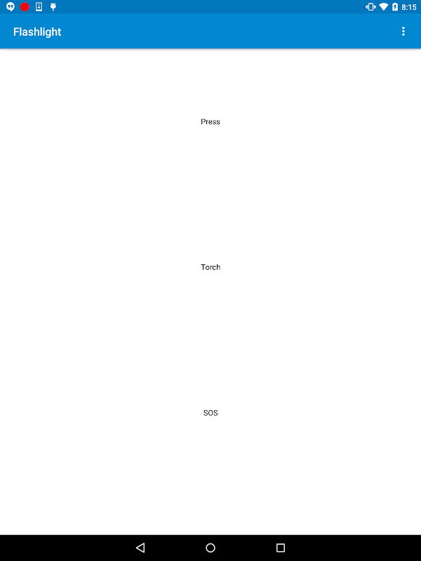 Ini menyediakan fungsi obor dengan mengaktifkan senter kamera. Ini mengatur flash ke level paling terang. Selain itu, ia memiliki built-in SOS sinyal cahaya penyelamat yang memicu kode morse SOS oleh senter. Ini berguna ketika Anda berada dalam situasi darurat.