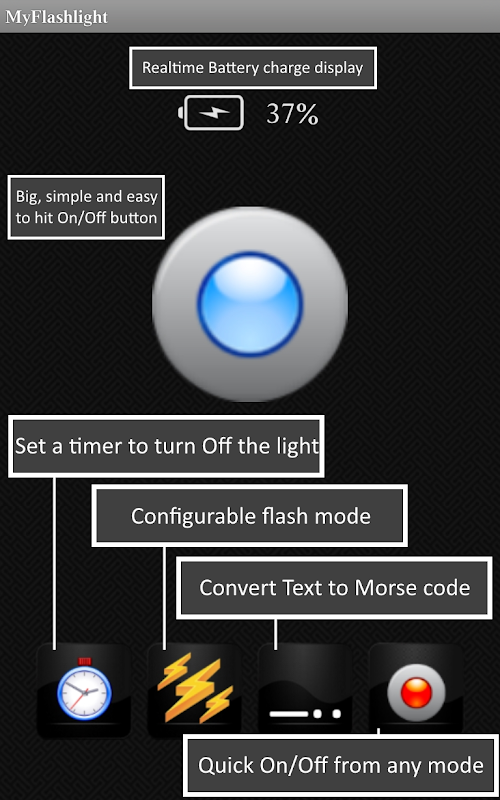 Mengubah perangkat Anda menjadi senter yang kuat dengan fungsi-fungsi lanjutan seperti Morse!