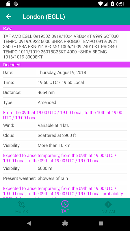 Briefing Penerbangan adalah aplikasi mobile yang memungkinkan pilot untuk mengambil METAR, TAF dan NOTAM data untuk stasiun di seluruh dunia. Stasiun favorit dapat disimpan, dan aplikasi juga akan memecahkan semua data sehingga lebih mudah dibaca. Anda juga dapat melihat laporan dari stasiun terdekat menggunakan fungsi lokasi perangkat Anda. Semua fitur dapat dengan mudah diakses dari sistem navigasi yang sederhana dan intuitif.