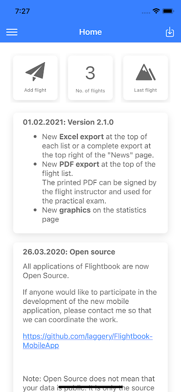 - Tambahkan penerbangan (tanggal, lepas landas, pendaratan, durasi, km, deskripsi, harga: Pendapatan untuk penerbangan tandem)