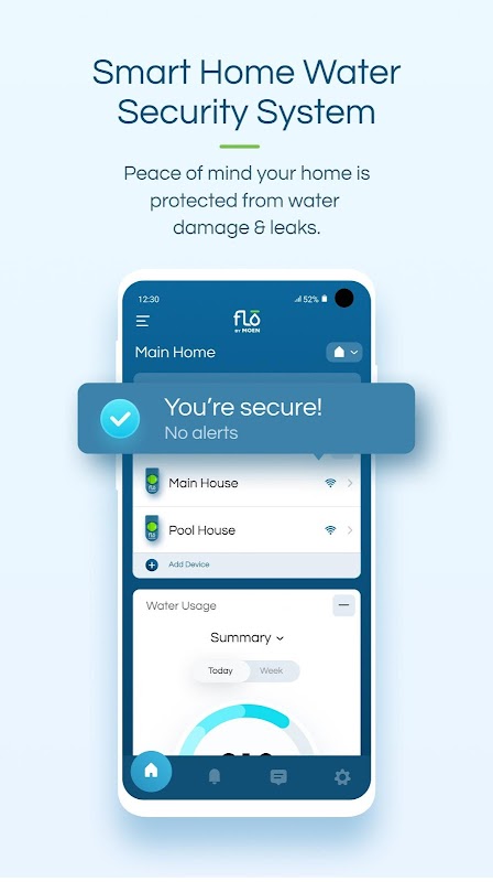 Flo by Moen adalah sambungan langsung Anda ke keamanan, konservasi, dan penghematan dengan fitur aplikasi utama ini: