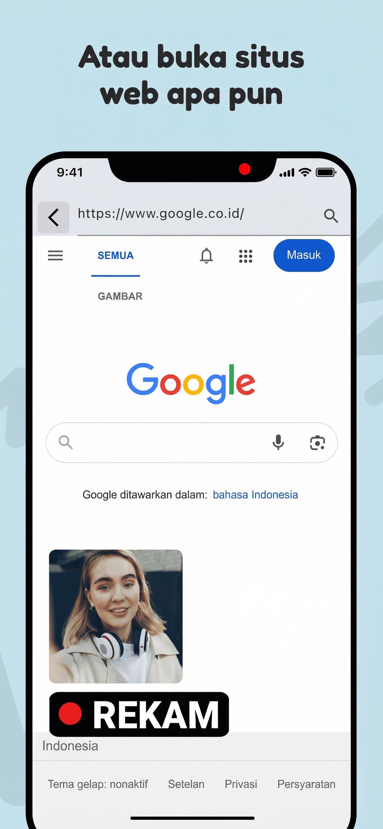 • 🌐 Browser web bawaan: Buka situs web apa pun sambil merekam diri Anda sendiri.