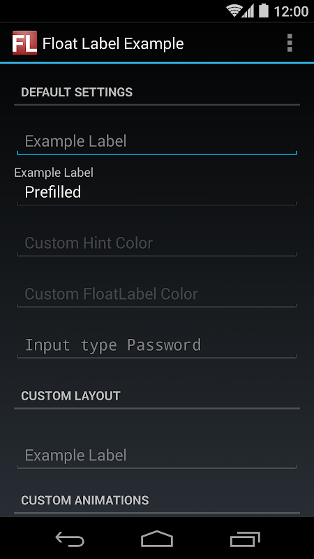 Aplikasi demo ini ditujukan untuk para pengembang hanya karena hanya menunjukkan Android perpustakaan mengambang Label.
