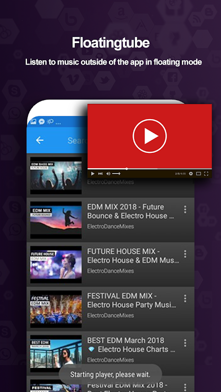 Float tube Pro is a free and powerful third party client YouTube. This application allows you to easily find great videos in all parts of the world and your country.Discover and listen to millions of free songs on YouTube in high-quality mode! You can keep the music playing while you use other apps.