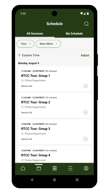 Mengakses konten sesi, peta, dan detail tempat di ujung jari Anda