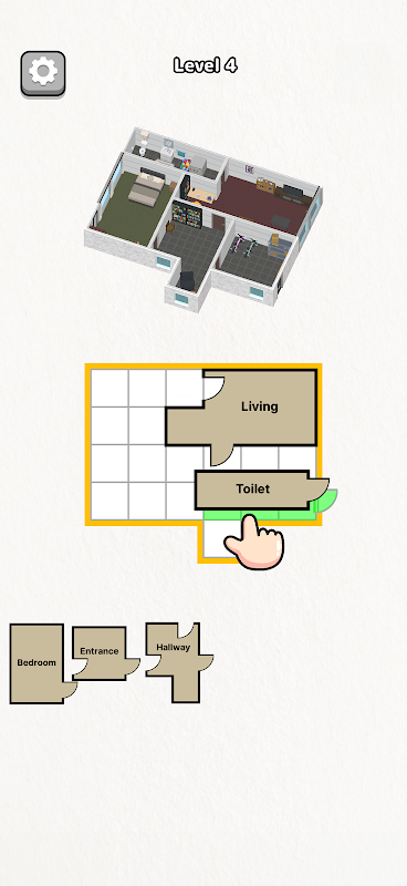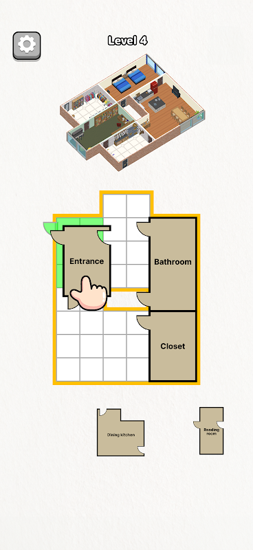 Game denah lantai tempat potongan-potongan ruangan disatukan untuk membuat rumah.