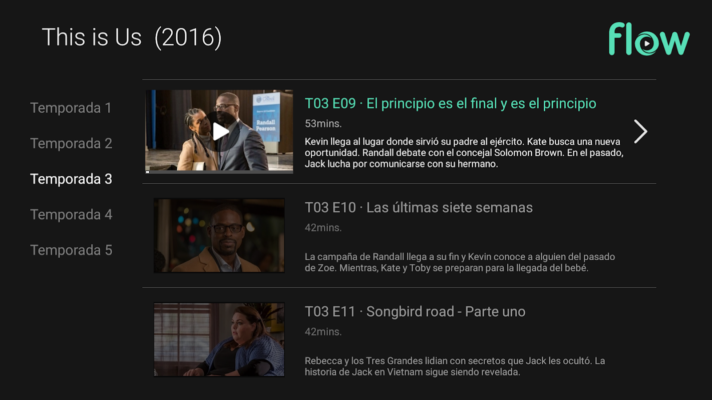 Flow adalah platform hiburan komprehensif yang menyatukan tayangan TV langsung, film, serial, dan premiere dalam satu tempat yang praktis. Layanan ini menawarkan akses ke lebih dari 200 saluran televisi langsung (termasuk 100 dalam HD) dan lebih dari 6.500 konten On Demand. Flow menonjol dengan fitur-fitur inovatifnya seperti kemampuan untuk memulai ulang konten TV yang sedang berlangsung, menjeda TV langsung, dan mengakses program dari 24 jam terakhir melalui panduan. Pengguna dapat membuat beberapa profil dengan rekomendasi konten yang dipersonalisasi, menerapkan kontrol orang tua melalui perlindungan PIN, dan menikmati tontonan yang mulus di berbagai perangkat dengan melanjutkan konten dari tempat terakhir mereka berhenti. Platform ini dilengkapi mesin pencari konten untuk navigasi yang mudah. Tersedia secara eksklusif untuk pelanggan Cablevisión Argentina dan Flow - Personal, layanan ini membutuhkan perangkat dengan sistem operasi Android 8.0 ke atas dan tidak kompatibel dengan perangkat yang di-root atau firmware yang dimodifikasi.