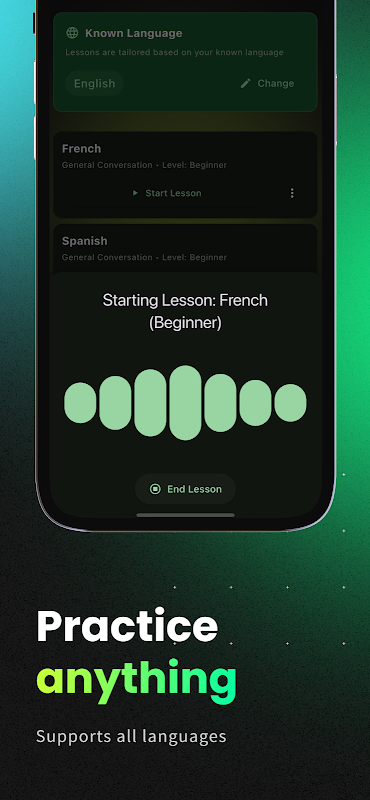 • Berlatih berbicara dengan tutor AI dalam 30+ bahasa, termasuk Inggris, Spanyol, Prancis, Jerman, Jepang, Korea, Mandarin, dan banyak lagi