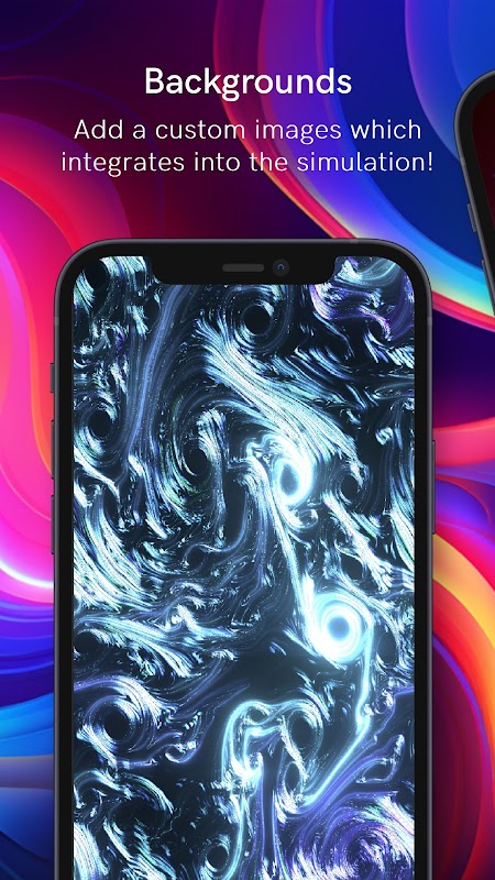 Fluid Live Wallpaper lets you transform your device into a piece of art. Relax and unleash your creativity by watching colors swirl, smoothly transition, and calm your mind. With Fluid Simulation Backgrounds, your screen turns into a masterpiece of artistry every time you touch it. Experience creativity, relieve stress, and embrace the peace fluid light. Experience calmness and relaxation each swirl brings to your day with Fluids Particle Simulation LWP.
