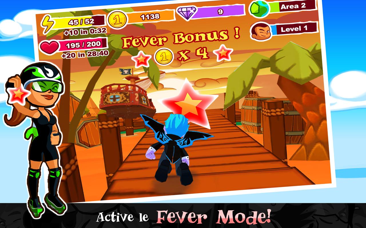 Ready? Off you go! Fly as fast as you can through exotic scenery to collect coins and advance through the levels. As a flying adventurer or as an out of control baby, slalom between hippos and pirate ships to capture hidden jewels.