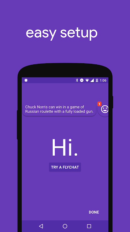 Flychat menawarkan cara revolusioner untuk membaca pesan dari utusan favorit Anda. Ini overlay setiap aplikasi lain dan Anda dapat menjawab dari mana saja Anda inginkan.