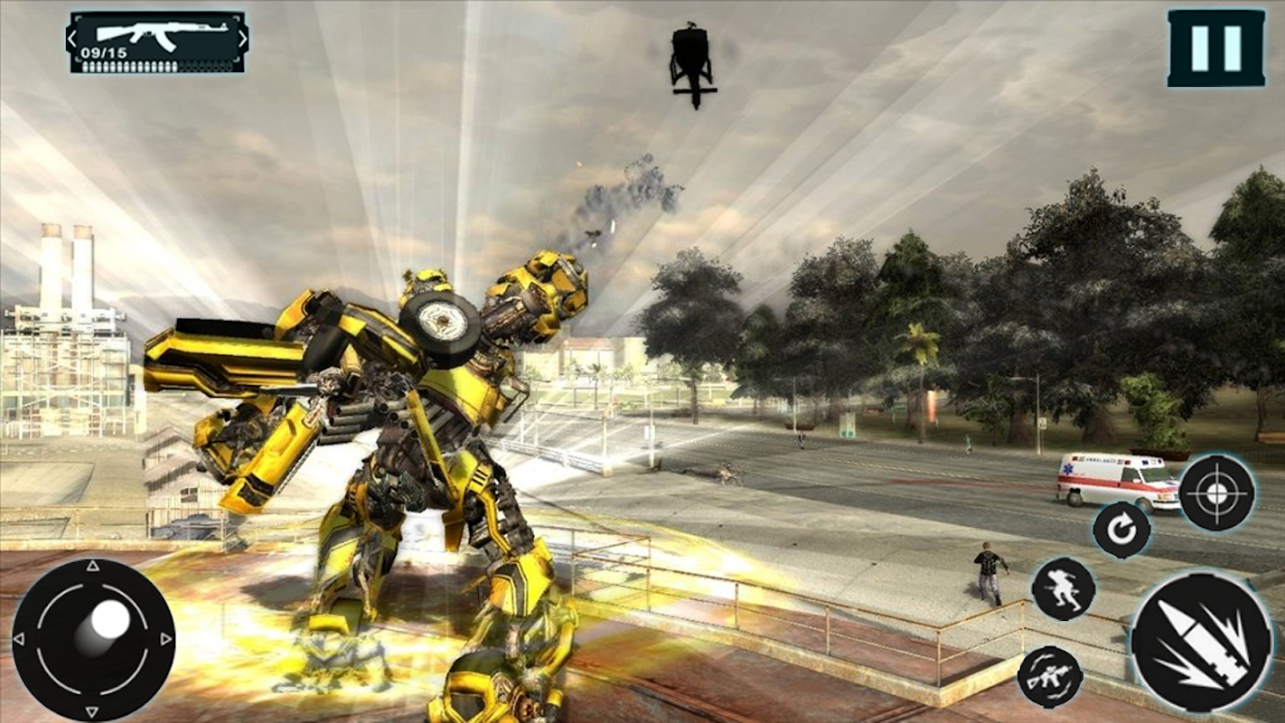 In this Flying Robot Car Bus Game, you have multiple robots options like flying car bus robot game for fighting likely robot car driving, robot bus driving, Flying helicopter, and transformer so you have to win and take complete control over the city again by battling against helicopter air jets games.