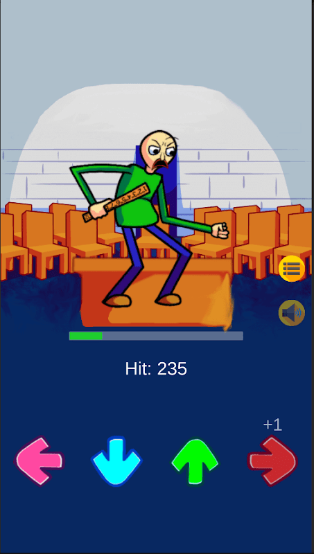 Apa yang harus Anda lakukan dalam game FNF Baldi Mod Test? Anda perlu, bersama dengan karakter utama, untuk mencetak jumlah poin tertinggi dengan mengklik panah di layar perangkat Anda! Sebelum memulai permainan, pilih trek yang paling Anda sukai dan status Baldi, lalu klik Mainkan. Setelah itu, di FNF Baldi Test Character, karakter utama dan empat panah akan muncul di layar, yang dengannya Anda akan mengontrol pahlawan. Segera setelah Anda mengklik panah, karakter akan menyanyikan nada tertentu dan membuat gerakan tertentu. Anda dapat mematikan musik latar jika Anda hanya ingin mendengar suara Baldi. Untuk melakukan ini, Anda perlu menekan tombol berbentuk bip di layar perangkat Anda.