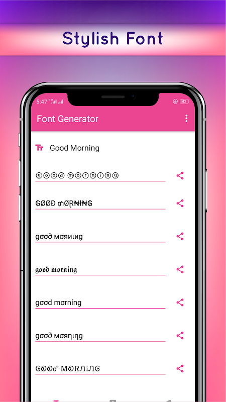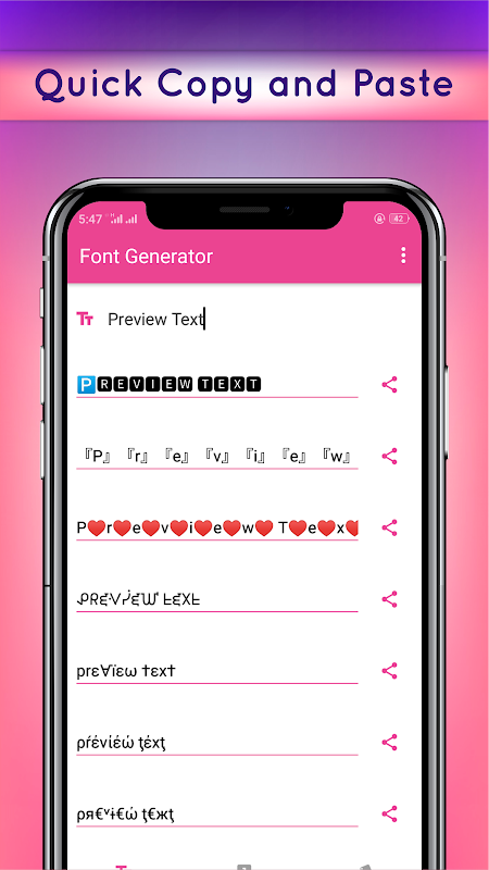 Font Generator is fun and handy application, just copy your favourite font style, beautiful design text and paste them anywhere to impress your friends.