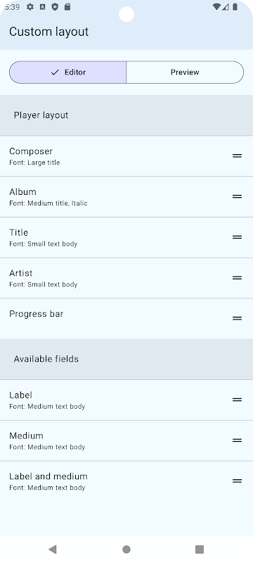- Rancang tata letak daftar putar dan tampilan pemutar
