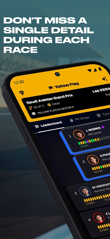 Lacak aksi dengan papan peringkat langsung, data waktu, analisis pit stop, strategi ban, menyalip, dan komunikasi radio tim. Tetap terinformasi dengan pembaruan kontrol balapan, penalti, dan kedudukan kejuaraan, sambil berinteraksi dengan komentar langsung dan dokumen resmi untuk konteks yang lebih dalam.