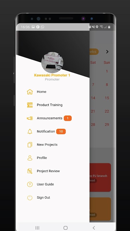 - Tampilan kalender dengan lokasi yang ditugaskan untuk melaporkan tugas