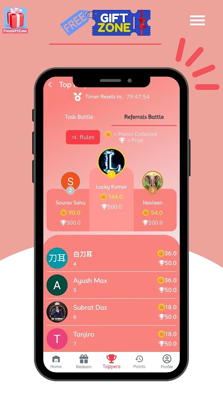Anda dapat menggunakan poin freegiftzone untuk mengklaim kode penukaran gratis yang tercantum di dalam aplikasi.