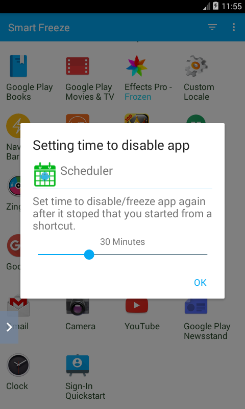 +Immediately launch app which have been frozen which from App's "Home Screen" or from shortcut and automatically disable/enable app when you that app.