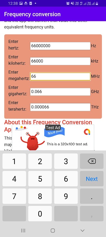Aplikasi konversi satuan frekuensi untuk hertz, kilohertz, megahertz, gigahertz