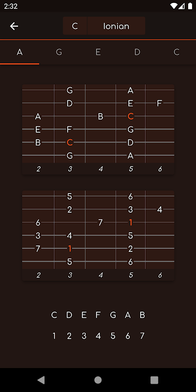 Aplikasi untuk belajar tangga nada dan arpeggio pada gitar dan gitar bass.