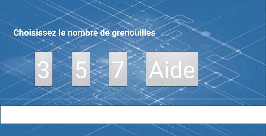 Permainan terdiri dari membuat katak menyeberangi sungai. Yang di sebelah kanan pergi ke kiri, yang di sebelah kiri ke kanan.