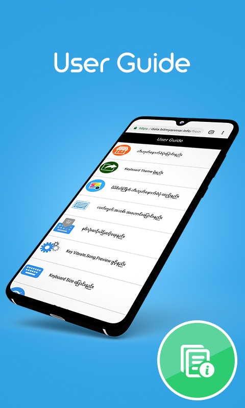 - Mendukung Myanmar (Unicode, Zawgyi) dan Bahasa Inggris