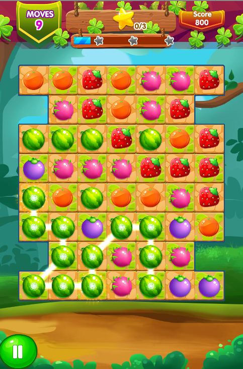 - Hubungkan tiga atau lebih sama buah untuk mencetak poin.