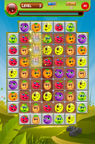 Dapatkan poin dengan menghapus Buah. Anda dapat membuat rantai lagi dari buah untuk mendapatkan lebih banyak poin!