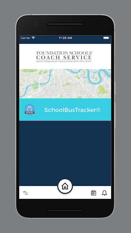 Mobile parent app part of a unique school transport software suite. Advanced parent notifications of bus departure and arrival time at the school as well as full tracking of the bus route.